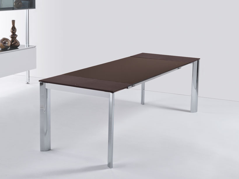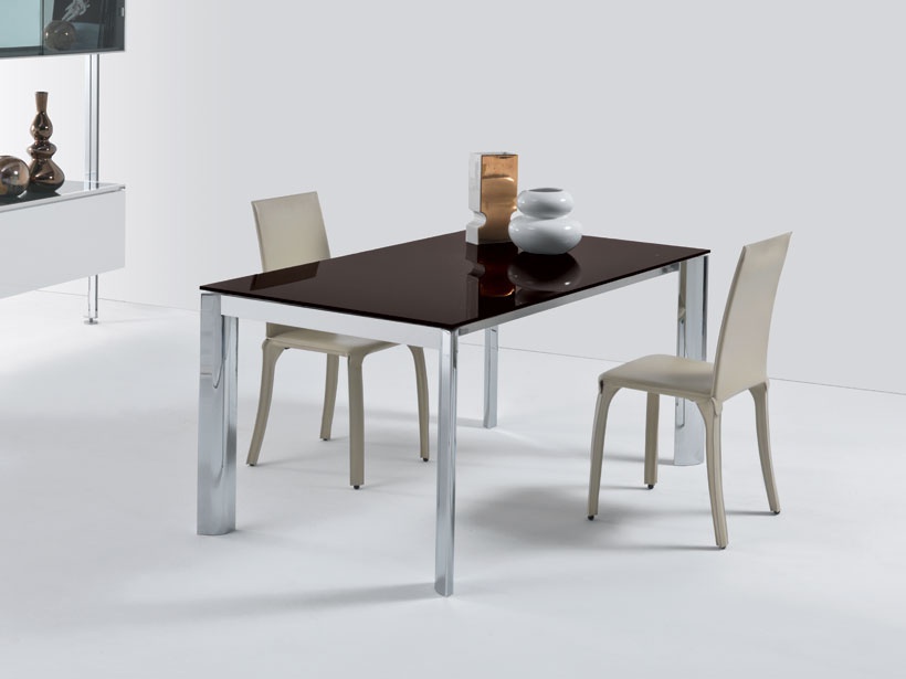 Dining table Drop from the Italian manufacturer Longhi. Frame in anodised aluminium natural or dark color; legs glossy chrome, dark shiny, glossy white lacquer, anodised aluminium. Table tops in tempered glass 12 mm white ExtraWhite, Moka. The model is made in a modern style, combines tradition and design.