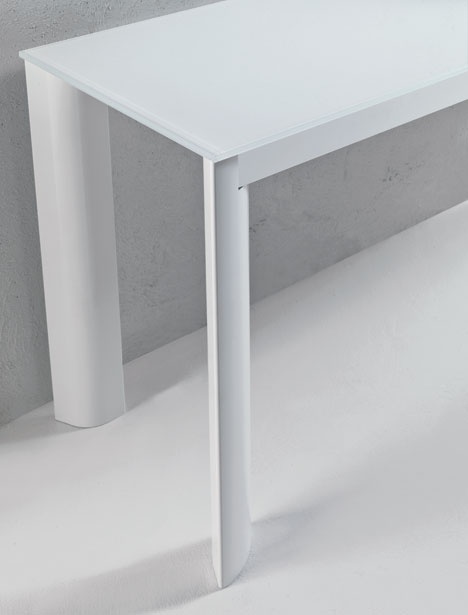 The console Drop from the Italian manufacturer Longhi. Frame in anodised aluminium natural or dark color; legs glossy chrome, dark shiny, glossy white lacquer, anodised aluminium. Table tops in tempered glass 12 mm white ExtraWhite, Moka. The model is made in a modern style, combines tradition and design.