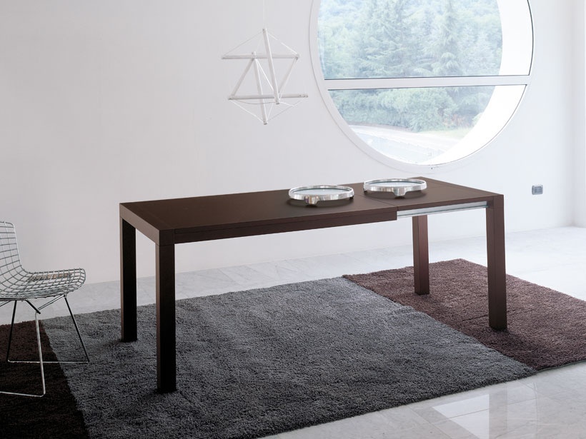 Desko dining table from Italian manufacturer Longhi. Extendable table with a simple and functional mechanism. Finish dark oak or oak with white lacquer coating, do not cover the wood texture. The model is made in a modern style, combines tradition and design.