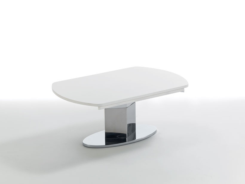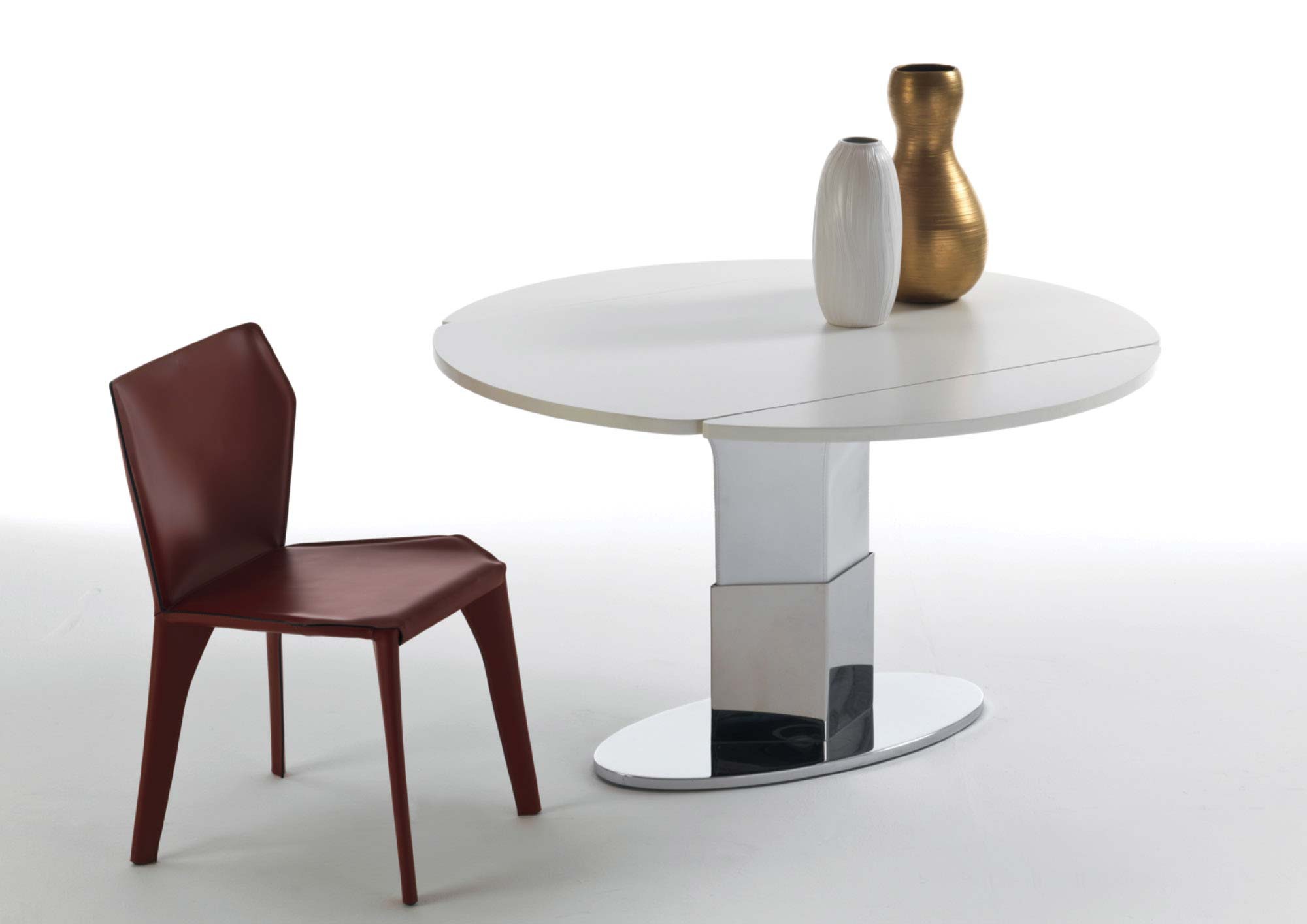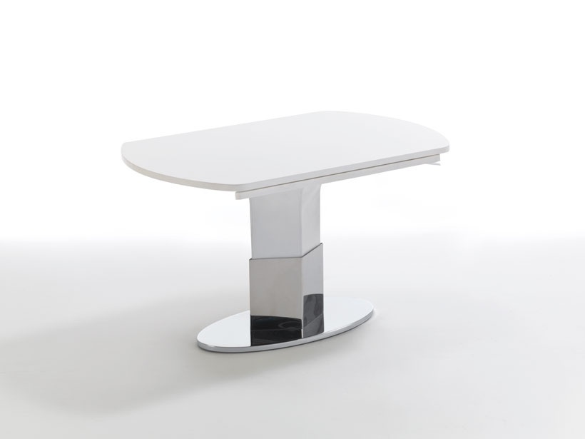 Extra dining table from Italian manufacturer Longhi. The glossy chrome base, the upper part painted in white. Countertops dark color, walnut Canaletto, white lacquer, not covering the texture of wood or glossy white lacquer. The model is made in a modern style, combines tradition and design.