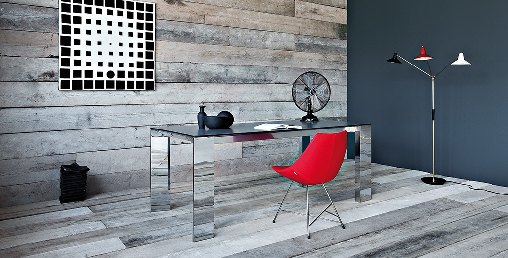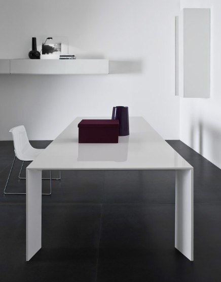 The Magno table by Italian manufacturer Pianca. Materials used: metal, natural wood. Color backgrounds white, steel. Available chrome plated surface. Other finish options. The table is expanded using insert. The style is modern.