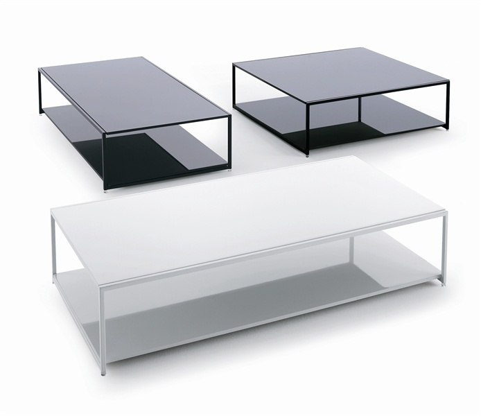 Coffee table Frame Evo from the Italian manufacturer Pianca. Low table with square and rectangular glass top. Frame in lacquered metal. A base made of wood in a glossy lacquer. Color options white, black, red. Will perfectly complement a modern interior.