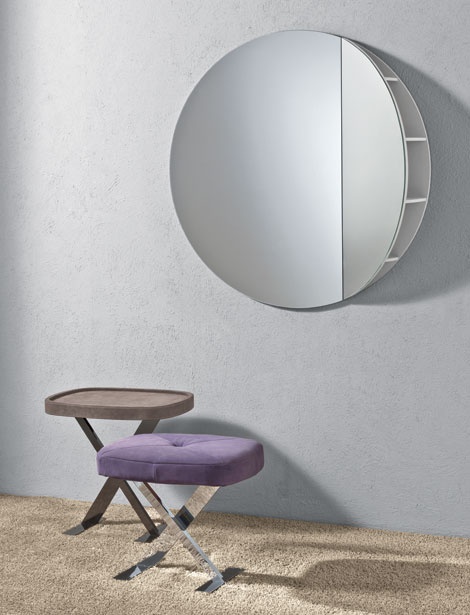 Wall mirror Globe from the Italian manufacturer Longhi. Mirror with compartment for items to finish - matte white lacquer. The model is made in a modern style, combines tradition and design.
