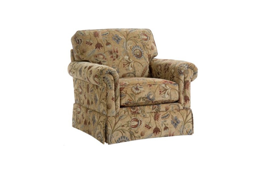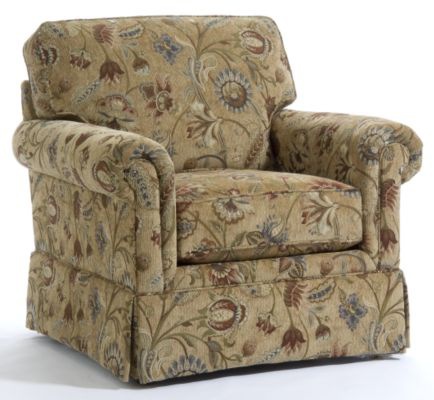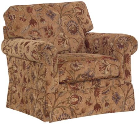 The Audrey chair from American Furniture manufacturer Broyhill. This practical chair is a familiar silhouette, made in a classic style, an elegant complement to the interior of Your living room. Chair frame is made of wood hardwood, filler - foam soy. For seat cushion orthopedic used DuraCoil, providing long-lasting comfort and durability. Soft rolled arms trimmed with edging and incorporated folds, the padding falls down pleated skirts covering the legs. Curly backrest, upholstery textile with large patterns. The color and texture of the upholstery and decorative elements you can select by manufacturer's catalogue of more than 500 variants.