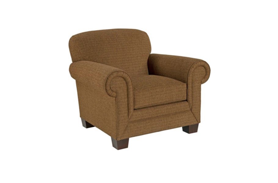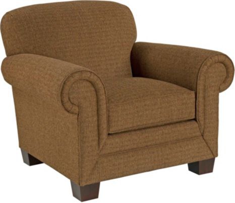 The Ava armchair from the American manufacturer Broyhill Furniture. This elegant cozy chair is a traditional silhouette made in the English style, will be a great addition to the interior of Your living room, study or library. The frame and tapered legs the chairs are made from wood of deciduous breeds. For seat cushion orthopedic used DuraCoil, providing long-lasting comfort and durability. Soft rolled arm rests are edged with pleated folds. Curly back, brown cloth cover; the color and texture of the upholstery and decorative elements you can select by manufacturer's catalogue of more than 500 variants.