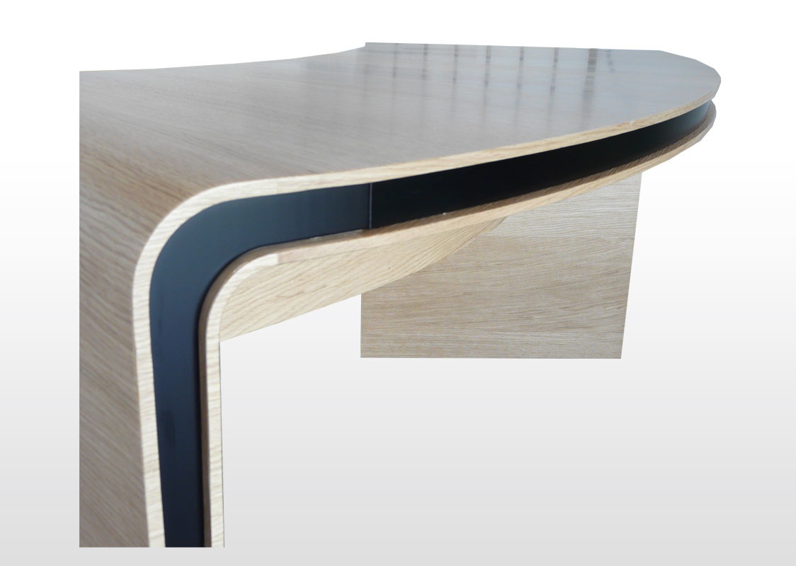 Desk Design from the Italian manufacturer MOD'...ART. Countertop curved shape, and the legs are made of solid wood, Matt lacquer finish. Table in modern design, ergonomic and stylish, perfectly fit into any interior. Colors: natural wood color. Texture, and colour choice in stock.