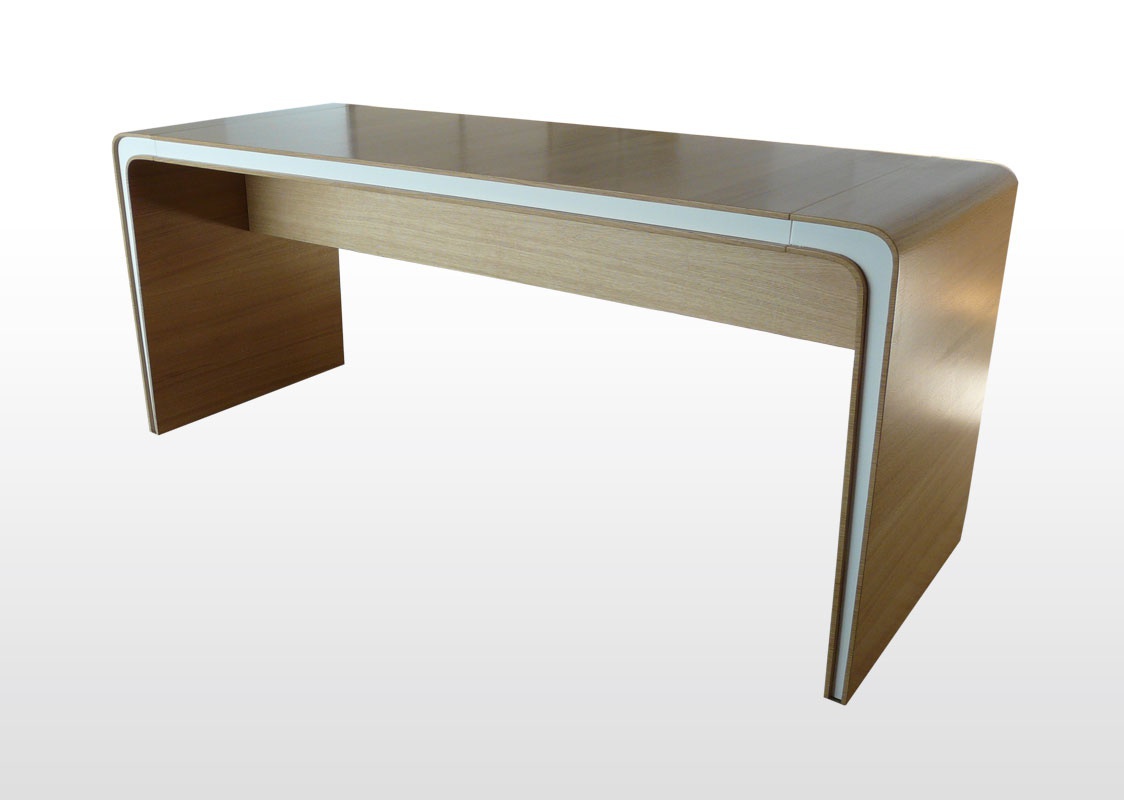 Desk Design from the Italian manufacturer MOD'...ART. The table-top of rectangular shape blends in with the legs. The table is designed in modern style, the presence of rounded corners gives a modern product notes of modernism. Table top, legs made from solid wood, Matt lacquer finish. Colors: natural wood color. Texture, and colour choice in stock. All materials are environmentally friendly.
