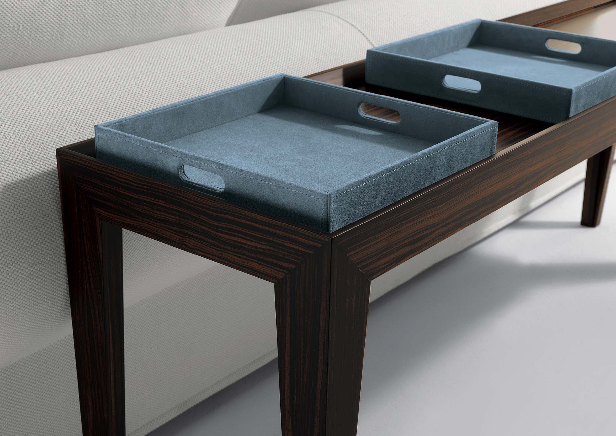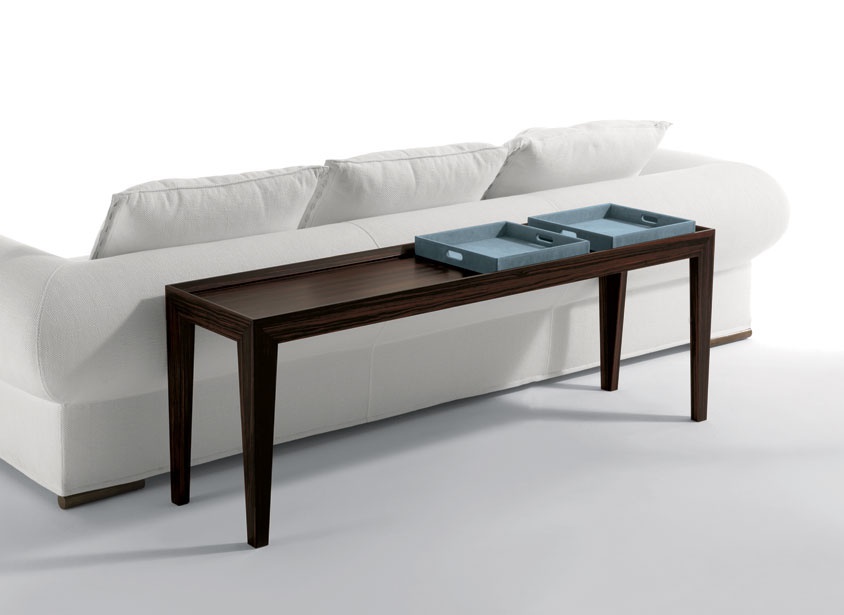 Console Ego from the Italian manufacturer Longhi. Tables “Ego” surprise skillful execution of precious wood - ebony, thermo oak and Canaletto walnut. Options - trays and a Cabinet with drawers covered with chamois leather (Suede), color in stock.