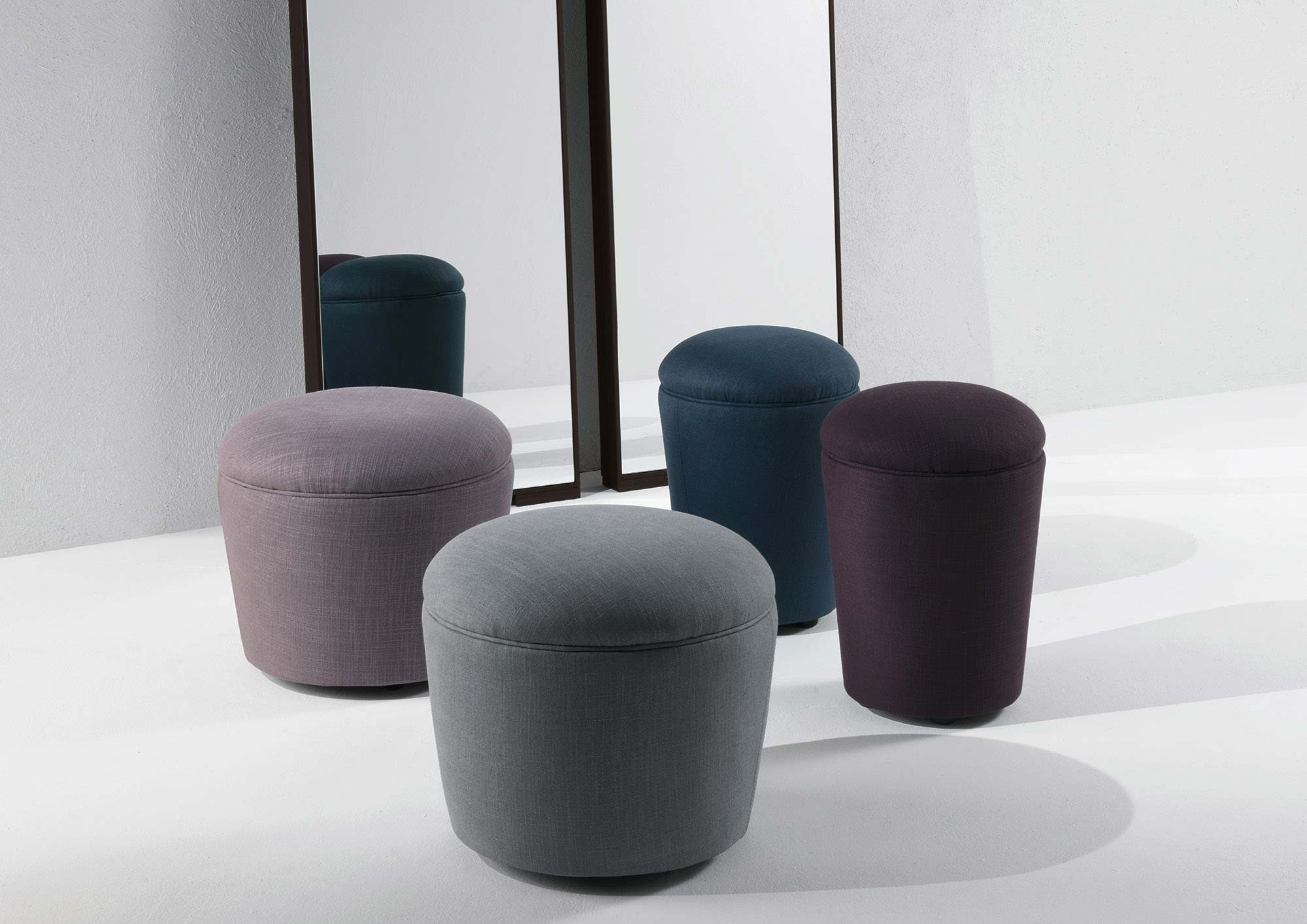 The Teo stool from the Italian manufacturer Longhi. The poufs collection available from Teo leather or fabric, colors are back in stock. Wooden frame covered with polyurethane foam high density. Metal ring finish bright gold, glossy chrome. Padding may be smooth, with Capito with a single coloured buttons or Swarovski crystals, padding with ruching a monochrome buttons or Swarovski crystals.