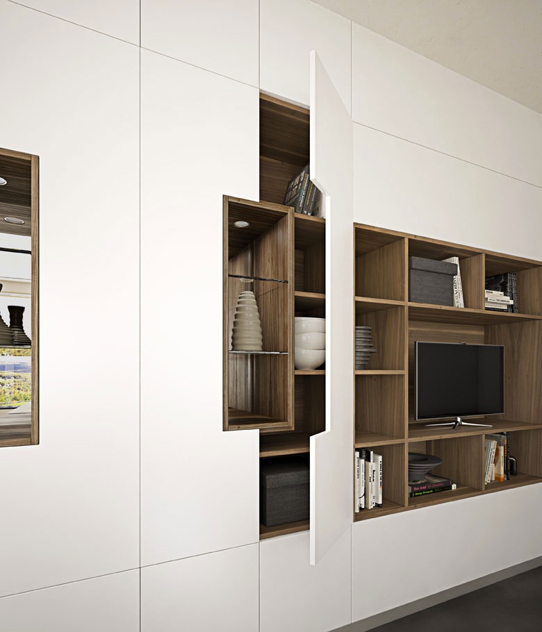 Sofa set Essentia from the Italian manufacturer MOD'...ART. Consists of rack, chairs, coffee table. Bookcase with open and closed niches are made of wood, varnished. The chair-relax - open frame in chromed metal, upholstered in soft leather. Low coffee table - wood lacquered. Presented headset colors: natural wood beige, white. It is important to note that lacquer, wood, texture - based on the number of items.