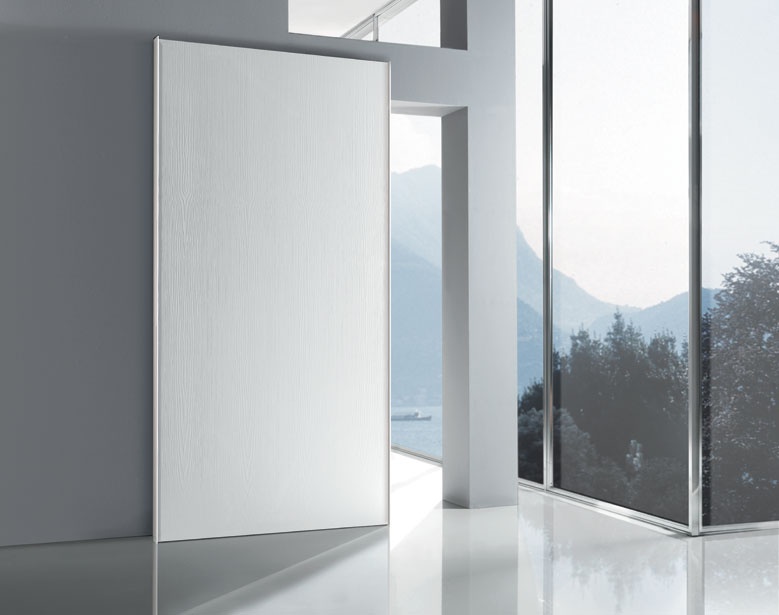 Door Wall-Up from Italian manufacturer Longhi. Wall-Up the collection of sliding doors that has an exclusive advantage: the patented sliding system is completely hidden into the door. Doors mount to the wall or to the floor moving silently,