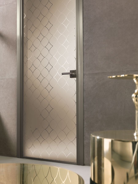 Hinged door Spark from the Italian manufacturer Longhi. Frame - metal. Glass sash. The model is made in a modern style, combines tradition and design. Colours in stock.