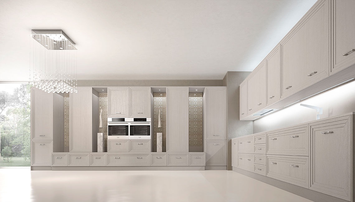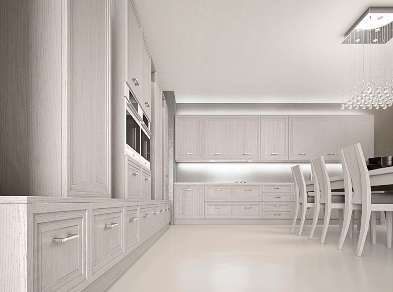 Set for the kitchen Surface from Italian manufacturer MOD'...ART. Set consists of a Cabinet for built-in appliances with open niches, hinged boxes, and the bottom section for storage with work surface. The body is made of solid wood. Finish - Matt lacquer water-based. The table-top working area made of natural stone. The accessories are made of stainless steel. Set concise form presented in white colour. It is worth noting that wood, stone and colors to choose from manufacturer's catalogue.