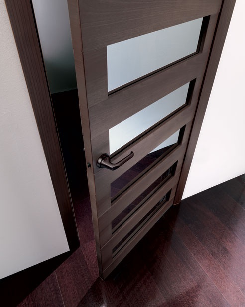 Hinged door Shadow from the Italian manufacturer Longhi. Frame - natural wood. Sash - glass. The model is made in a modern style, combines tradition and design. Colours in stock.