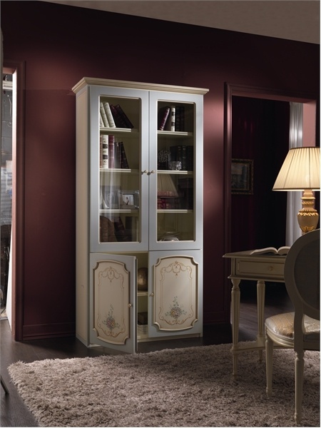 Bookcase MBV Liberia from the Italian manufacturer Pellegatta. Bookcase c showcase handmade. Provided glazed and blank flaps, internal filling shelves. The frame is made from tamburino, plates with cellular filling on the basis of solid spruce. The plinth and the facade made of solid wood, ramino. The model is hand-painted in all colors from the range or by a given sample, possible decor in the form of hand painted miniatures in the technique employs a tempera 6-8 colors, drawing from the catalog of the factory or on the customer's sketch. The surface is covered with a substance, which protects it from scratches and damages.
