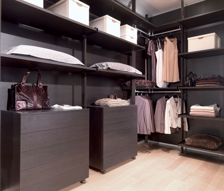 electrocrash for aluminum. Thanks to an exclusive mounting system, the shelves can be installed to the required height. Rack, lockable between the floor and the ceiling or attached to the wall, allow you to freely create solutions to meet any need. Walls can be covered with modular panels of boiserie (can also be cutting in size), produced with the following finishes: white melamine and melamine wenge.