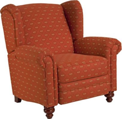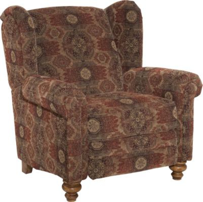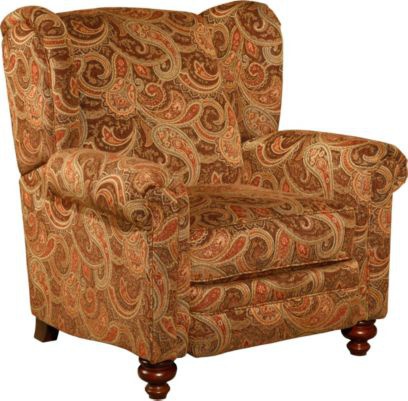 Chair Corrine recliner from American Furniture manufacturer Broyhill. Traditional English silhouette of this armchair, in the style of Queen Anne is an elegant addition to the interior of Your living room or bedroom. The folding chair includes a backrest and footrest that allows you to set three main positions - sitting, reclining and lying down. Thanks to its design, the recliner chair adjusts to the anatomical features of the body. The carved frame and the chair legs are made of wood of deciduous breeds. Soft high back with caps and rolled armrests feature decorative buttons. For seat cushion orthopedic used DuraCoil, providing long-lasting comfort and durability. Presents a model with tapestry pattern upholstery, the color and texture of the upholstery and decorative elements you can select by manufacturer's catalogue of more than 500 variants.