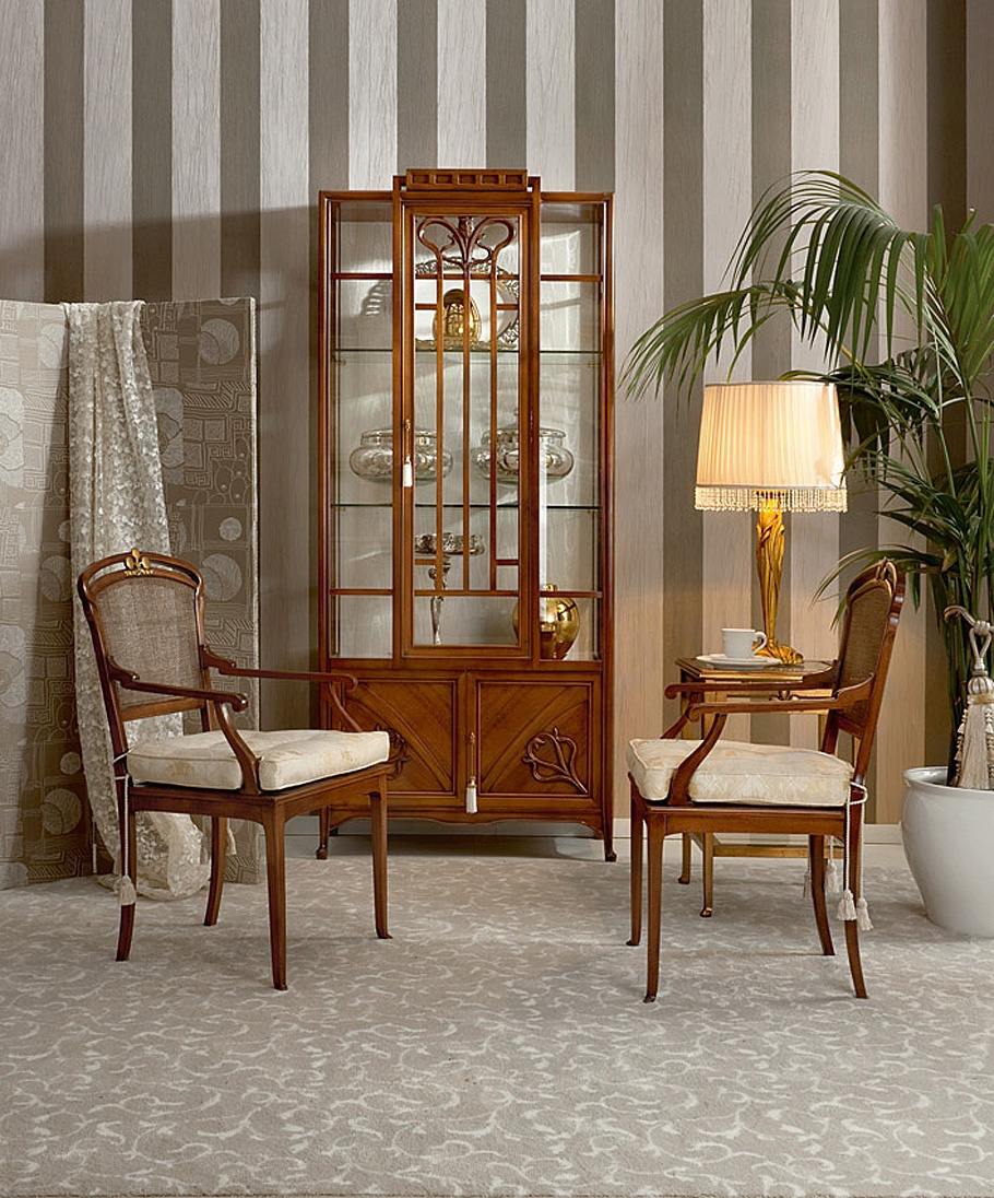Showcase Liberty from the Italian manufacturer Medea. The body is made of wood, front and side panels and shelves are made of glass. Showcase is also equipped with two swinging doors. The design is executed in liberty style.