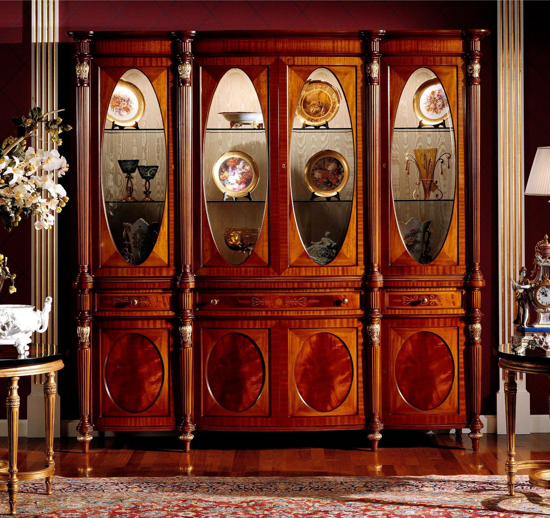Sideboard from Italian producer Armando Rho. The model is made from solid wood with decorative inlays of maple trees, decorated with handmade carving. Finish -gold leaf. Colours in stock.