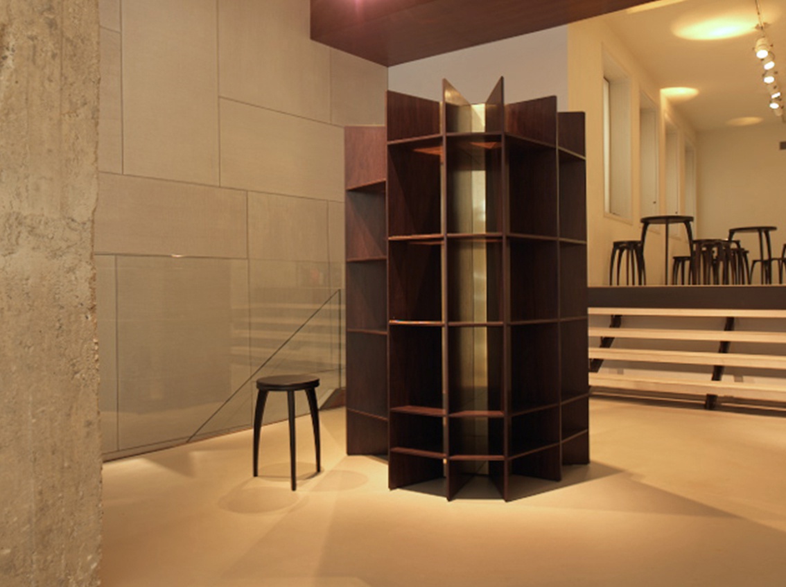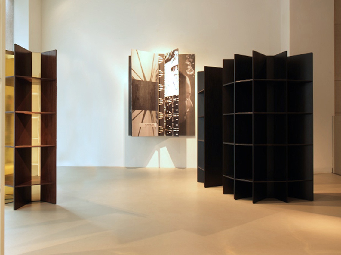 Rack Flowerblade Italian manufacturer Ceccotti. Presents a model of a rack with a set of open shelves. The shape of the original figure. Color dark brown tones of natural wood. A modern solution for the interior public spaces.