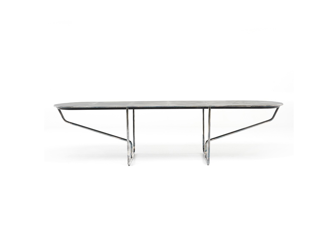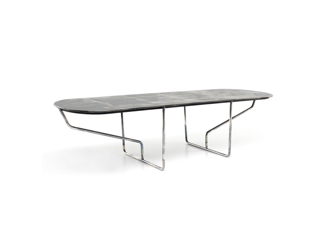Table oval DC Italian manufacturer Ceccotti. Presents a model of oval table on a metal frame. Countertop gray tone. Features the original leg. A modern solution for the interior of the dining room.