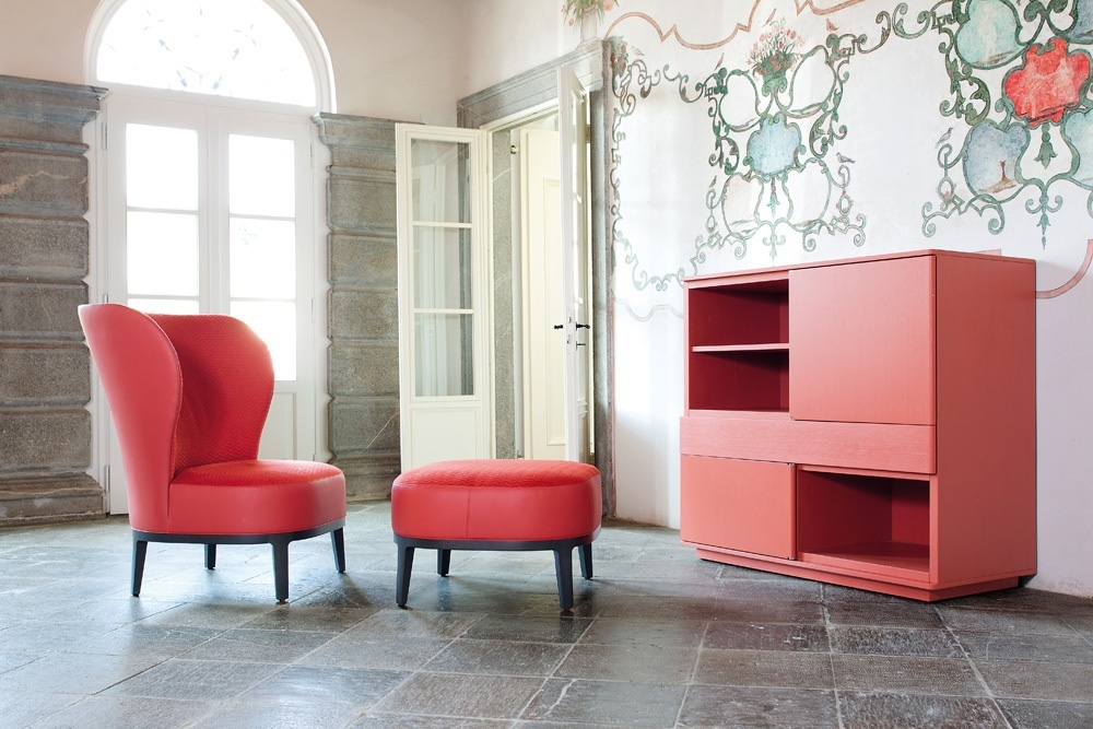 The Spring stool from the Italian manufacturer Past.... Frame - natural wood beech. Upholstery - textiles / leather. Filler foam. The model is made in a modern style, combines tradition and design. Colours in stock.
