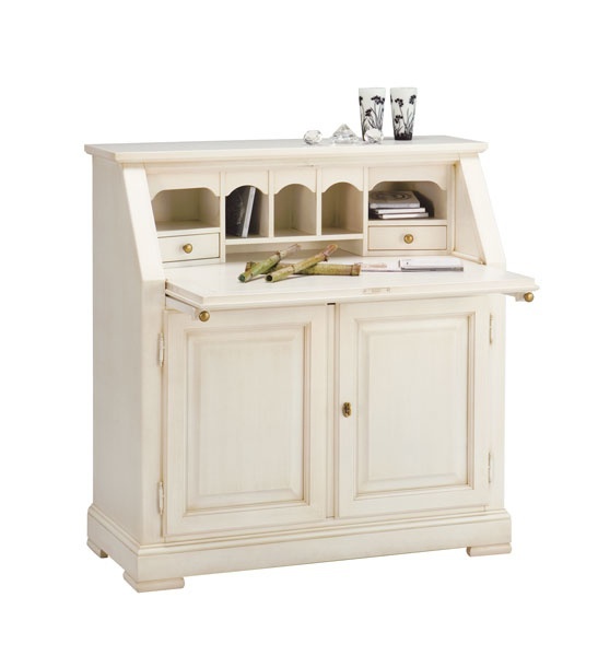 Bureau from the Italian manufacturer Selva. The product is presented in white. The lacquered frame is made from wood of the Tulip tree. Decorative accessories - metal. The model is executed in classical style, involves two small drawers in the area of the desktop.