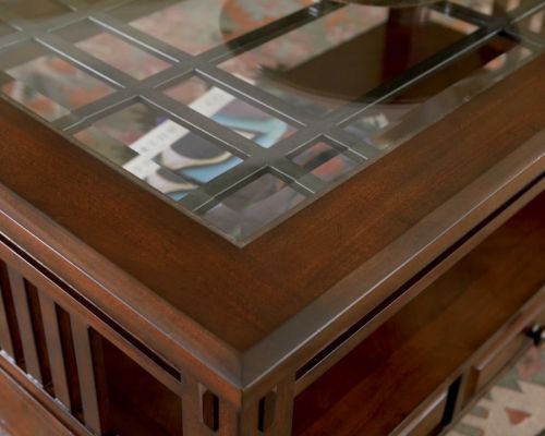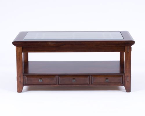 Vantana coffee table from American Furniture manufacturer Broyhill. Rectangular coffee table made by designer classical Greek style, updated with a glass inset on top, trimmed the bottom bars. This is a great choice for both traditional and modern living and dining rooms. Table made of wood multi-step finish that beautifies and protects the product. The sides are also decorated with grilles at the base there are three pull-out drawer to store napkins and other small items. Warm Golden brown finish and varnish will preserve the Shine and beauty products for long time.