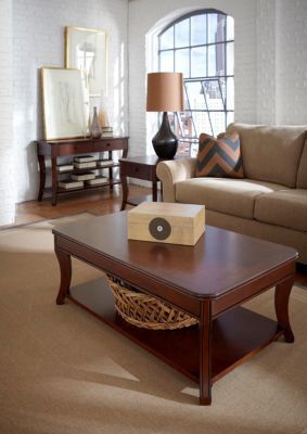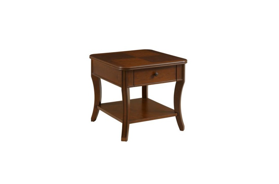 Arisa pridivannogo table from the American manufacturer Broyhill Furniture. Elegant rectangular table, designed in the English style, can serve as a bedside table. This is a great choice for both traditional and modern living rooms and bedrooms. Table made of wood of larch multi-step finish that beautifies and protects the product. Legs with crossbar curved, sabre-like top trimmed with cherry veneer collection. Under the sink sliding drawer for storage of different things, embellished with round handle antique gold.