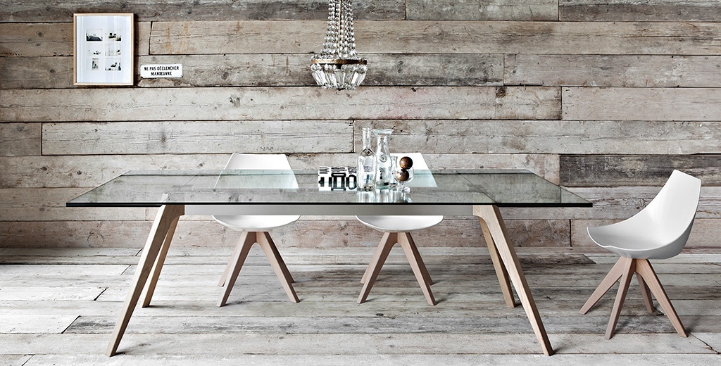 Rectangular dining table with glass top Delta, Pianca