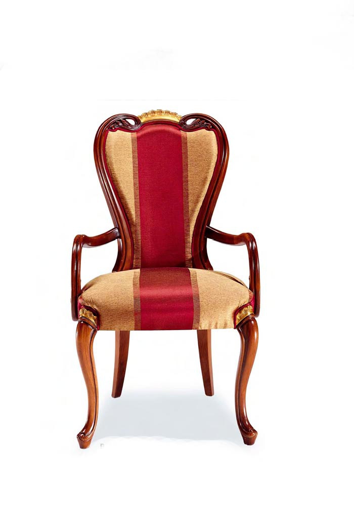 Armchair from Italian producer Armando Rho. Frame made of solid wood. Carved elements - hand made in gold leaf finish or in passerinii. Upholstery - textiles from the company portfolio. Colours in stock.