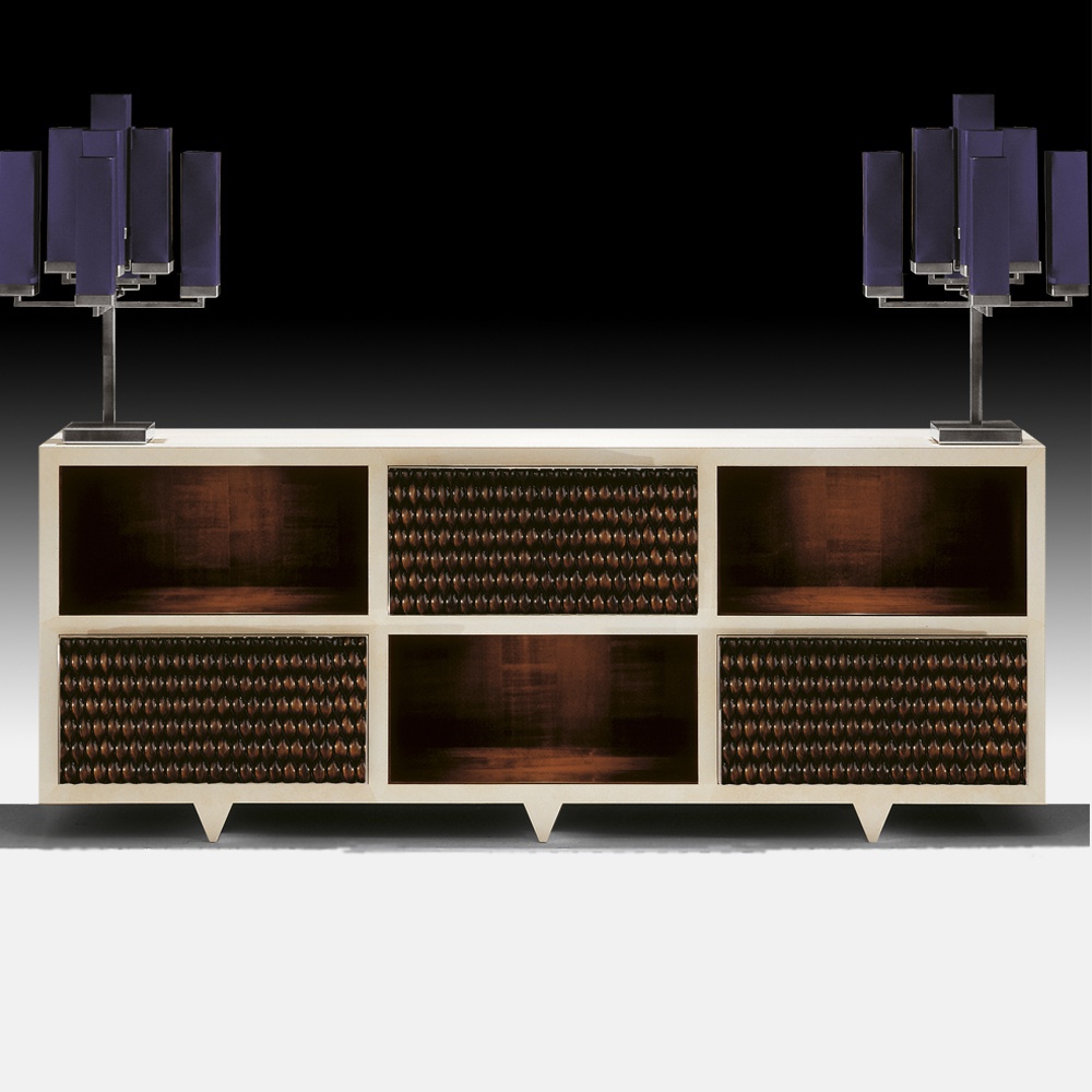 The rack bar from the Italian manufacturer Tura. The case is natural wood. The finish is a high - tech parchment (thin leather of a special tannage). The model is made in a modern style, combines tradition and design. Colours in stock. The pieces of furniture produced at the factory in Italy TURA, produced in limited quantities.