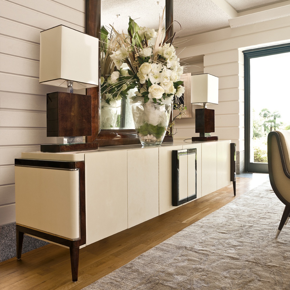 The buffet from the Italian manufacturer Tura. The pieces of furniture produced at the factory in Italy TURA, produced in limited quantities. The finish is a high - tech parchment (thin leather of a special tannage). The case is natural wood. The model is made in a modern style, combines tradition and design. Colours in stock.