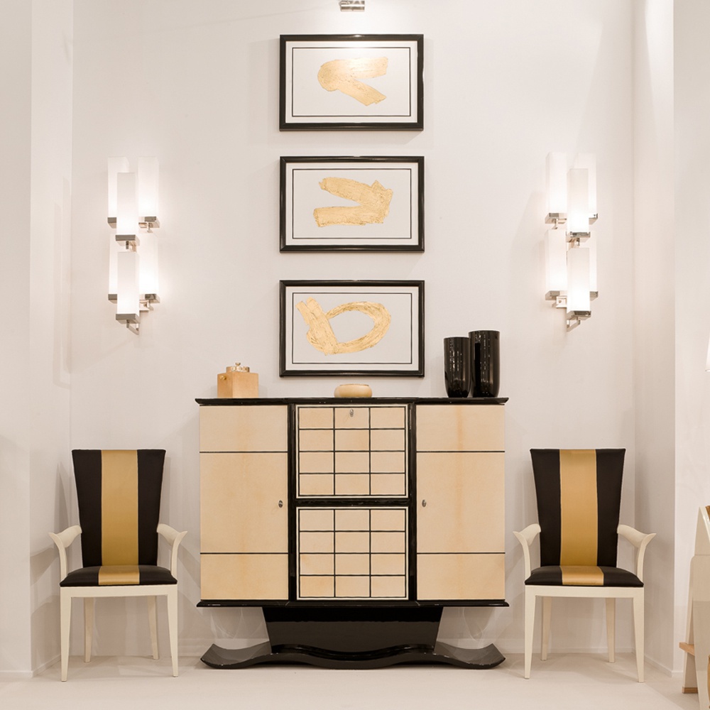 | Description: | The Onda bar Cabinet from the Italian manufacturer Tura. Frame - wood. Door trim - parchment finish frame - black lacquer. Inside mirrors and glass shelves. |