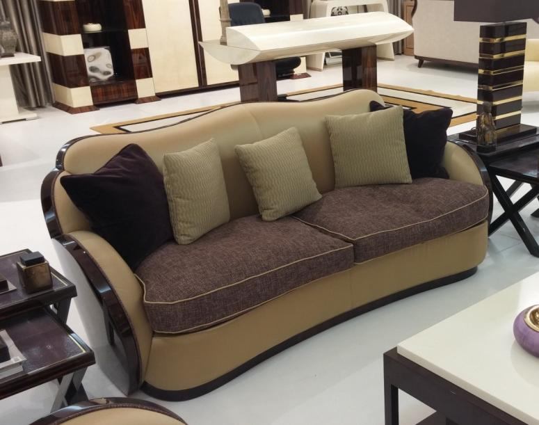 Double sofa Fede from the Italian manufacturer Tura. The frame is natural wood. Upholstery - textiles. The finish is a high - tech parchment (thin leather of a special tannage). The model is made in a modern style, combines tradition and design. Colours in stock.