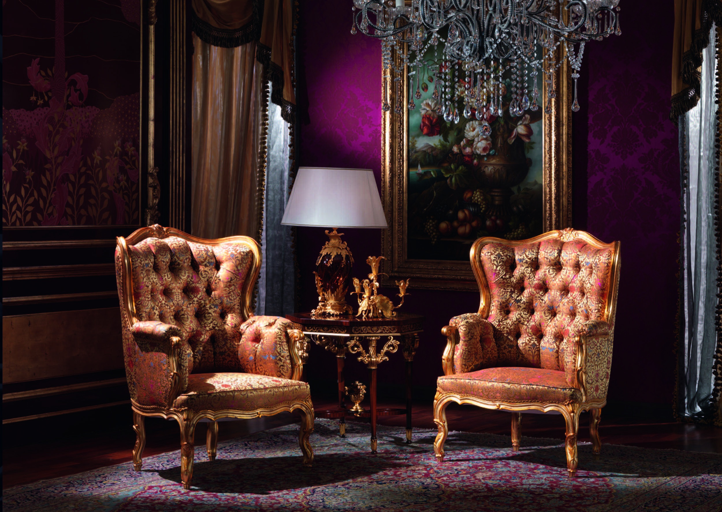 frame: solid wood upholstery: textiles carved elements: handmade decorative elements: gilding |