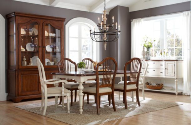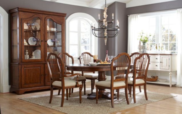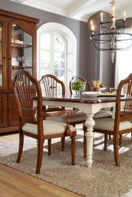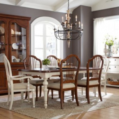 Creswell chair from American Furniture manufacturer Broyhill. Dining chair is undoubtedly inspired by the famous Windsor chairs. This is a great choice for both traditional and modern living and dining rooms. The chair is made of wood with multi-stage finish that beautifies and protects the product, the colours are natural cherry. Baluster turned legs, curved backrest is designed in the form of the spokes, tight beam. Padded seat with fabric upholstery. Available in two versions: with armrests or without them.