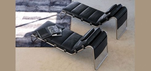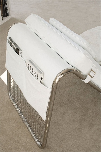 Upholstered chaise with frame made of metal Pacific - Rivolta. As the upholstery used is genuine leather. The model is executed in modern style, can be used as bedroom furniture or as a furniture for a summer terrace.