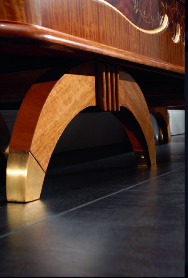 Sideboard from Italian producer Armando Rho. The model is made from solid wood inlaid with combinations of several types of wood. The hand-carved finish lacquer. Colours in stock.