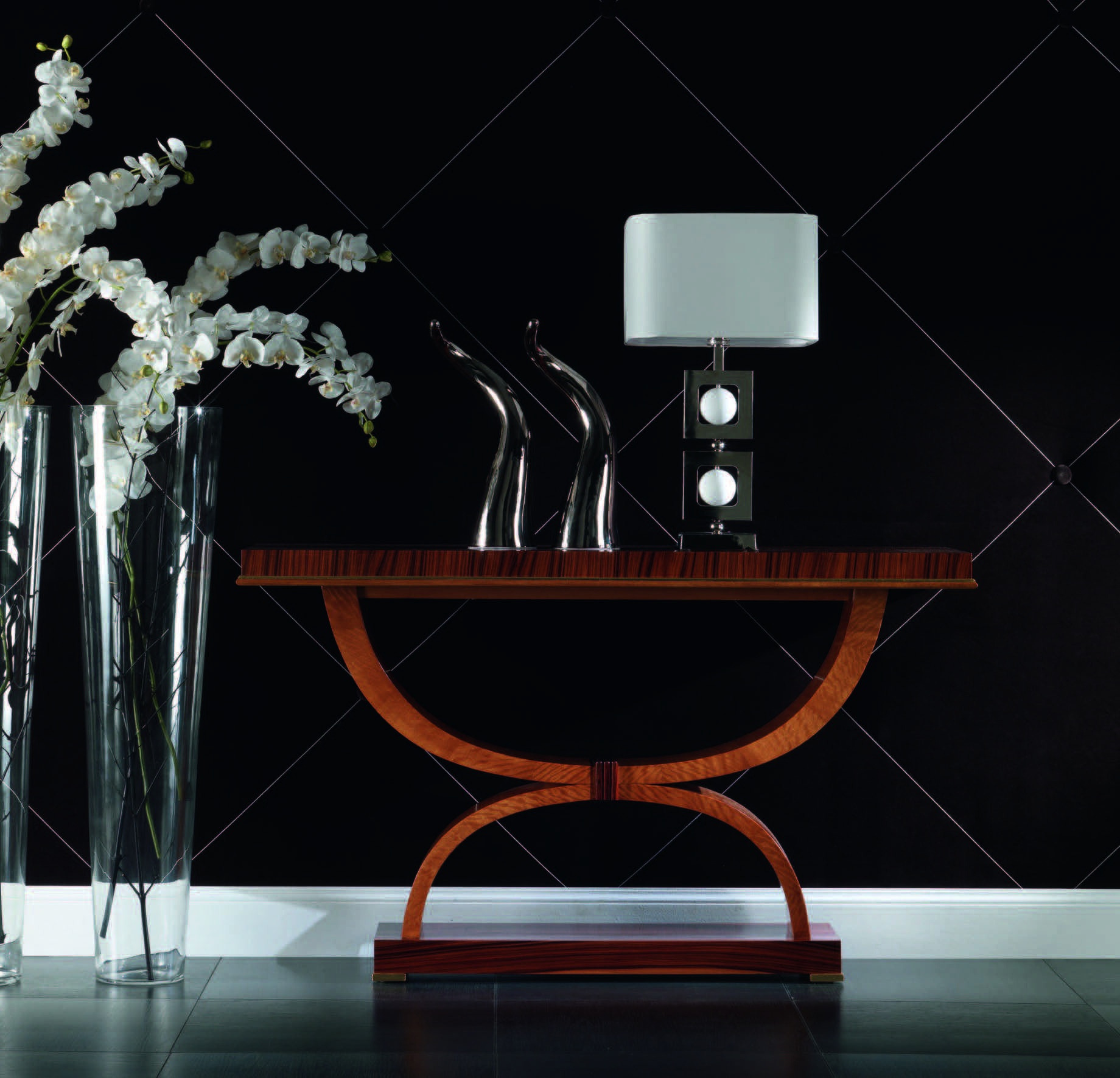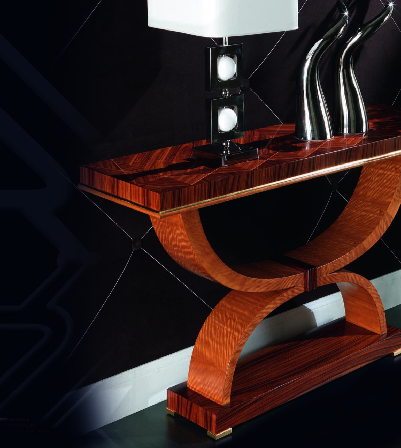 Console from the Italian producer Armando Rho. The model is made from solid wood inlaid with combinations of several types of wood. The hand-carved finish lacquer. Colours in stock.