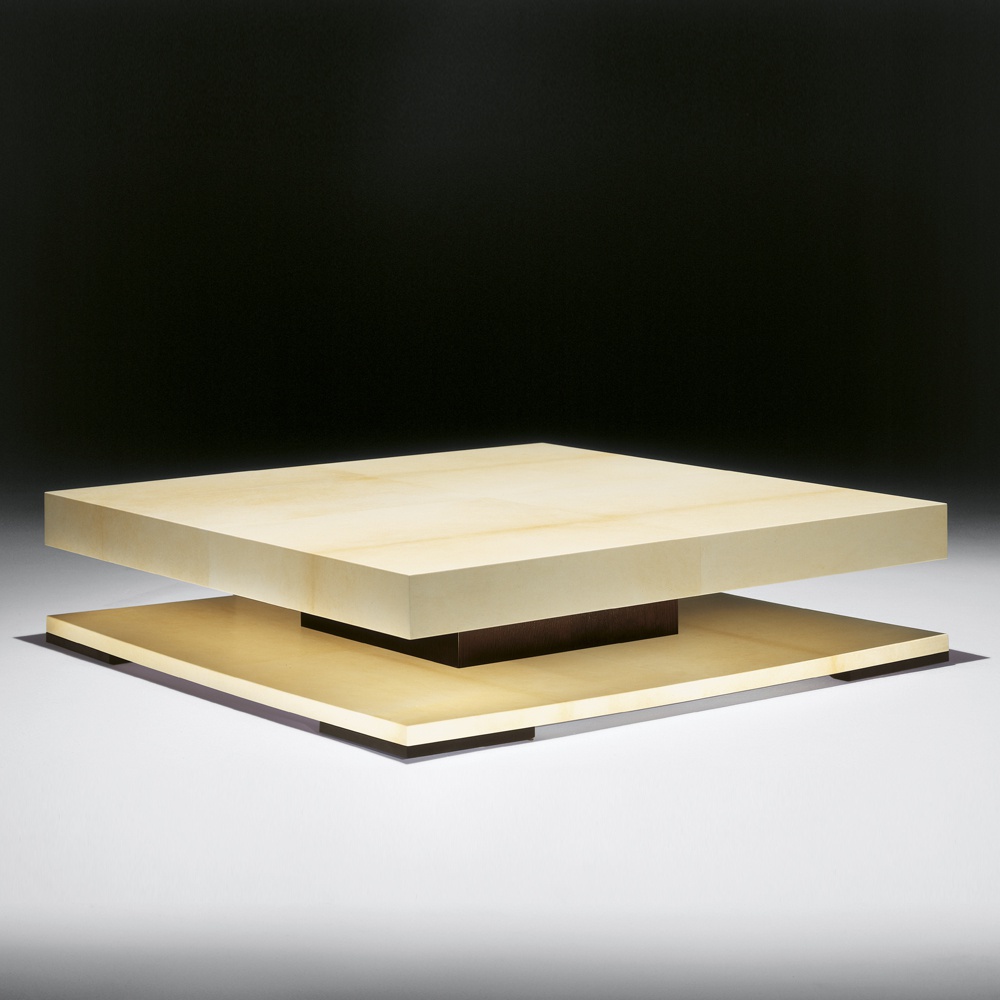Coffee table from the Italian manufacturer Tura. The model is made from natural wood. The finish is a high - tech parchment (thin leather of a special tannage). The style is modern. Colours in stock. The pieces of furniture produced at the factory in Italy TURA, produced in limited quantities.