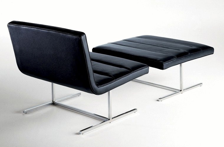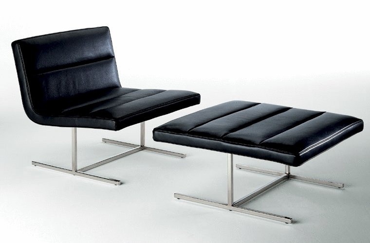 Chair on a metal frame, Self - Rivolta. For an upholstery is used the skin of a camel or crocodile leather. The model is executed in black color. Stylish and elegant armchair with foot bench will bring an element of luxury and aristocracy to Your living room.