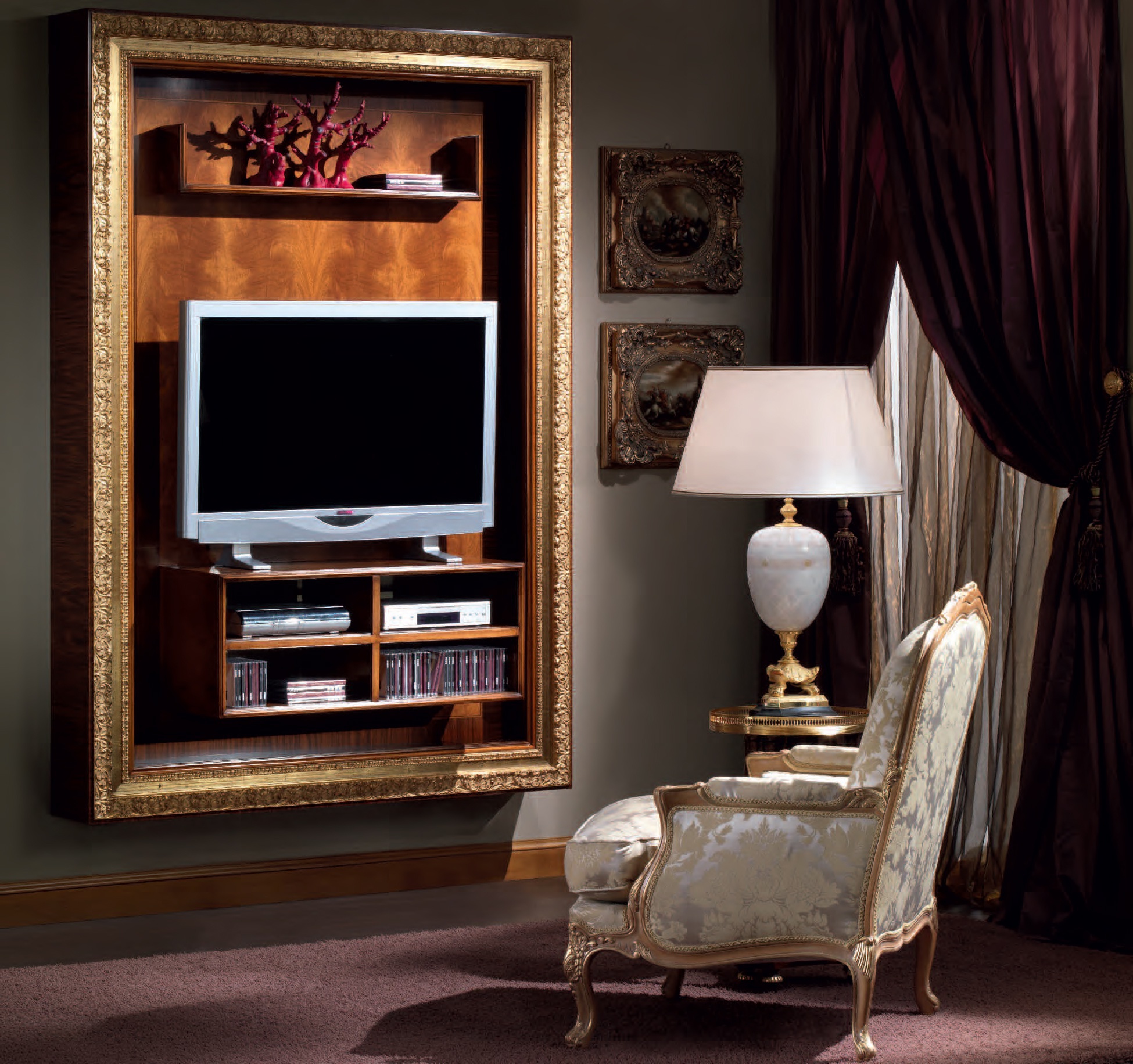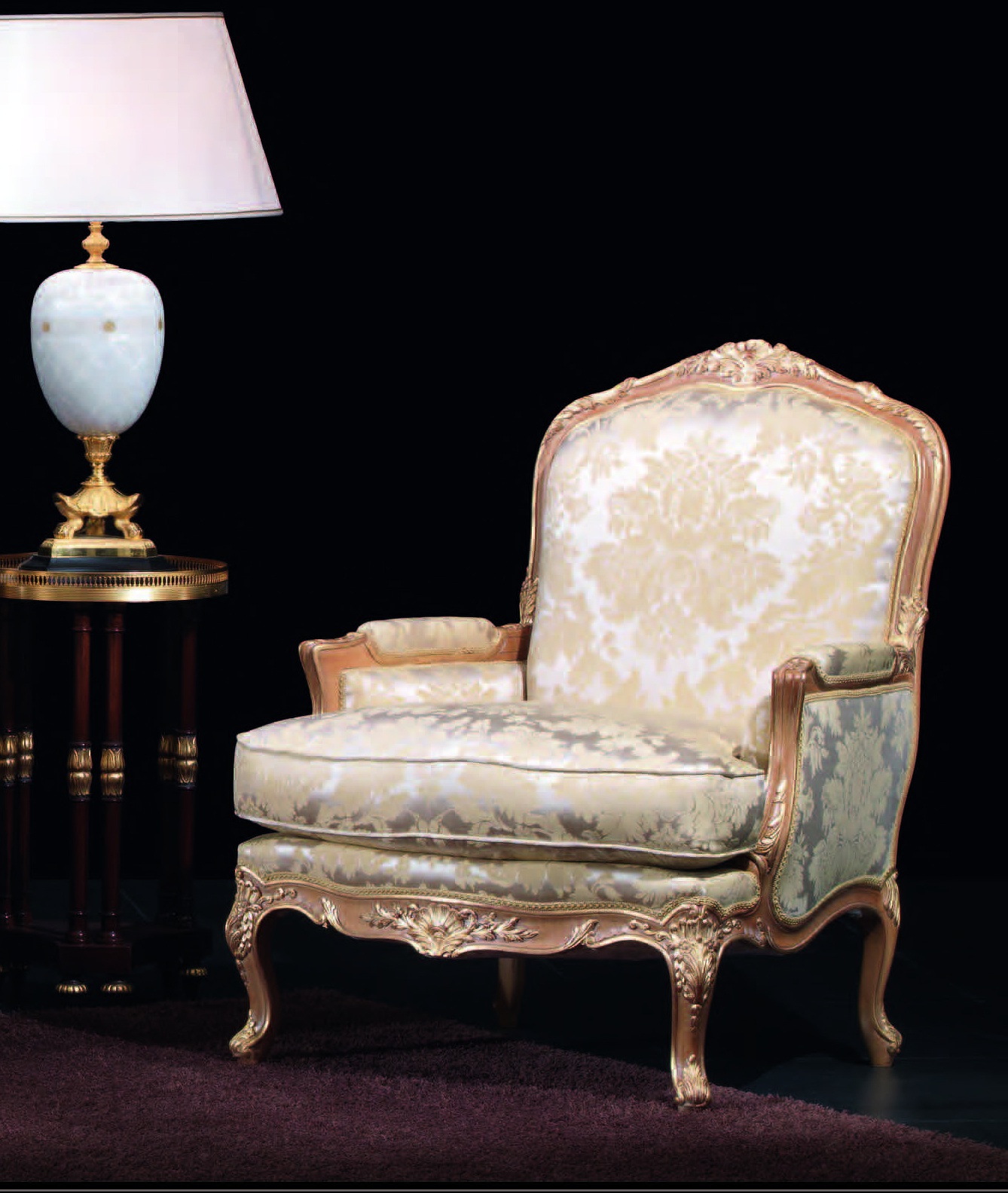 frame: solid wood upholstery: textiles decorative elements: gilding carved elements: handmade |