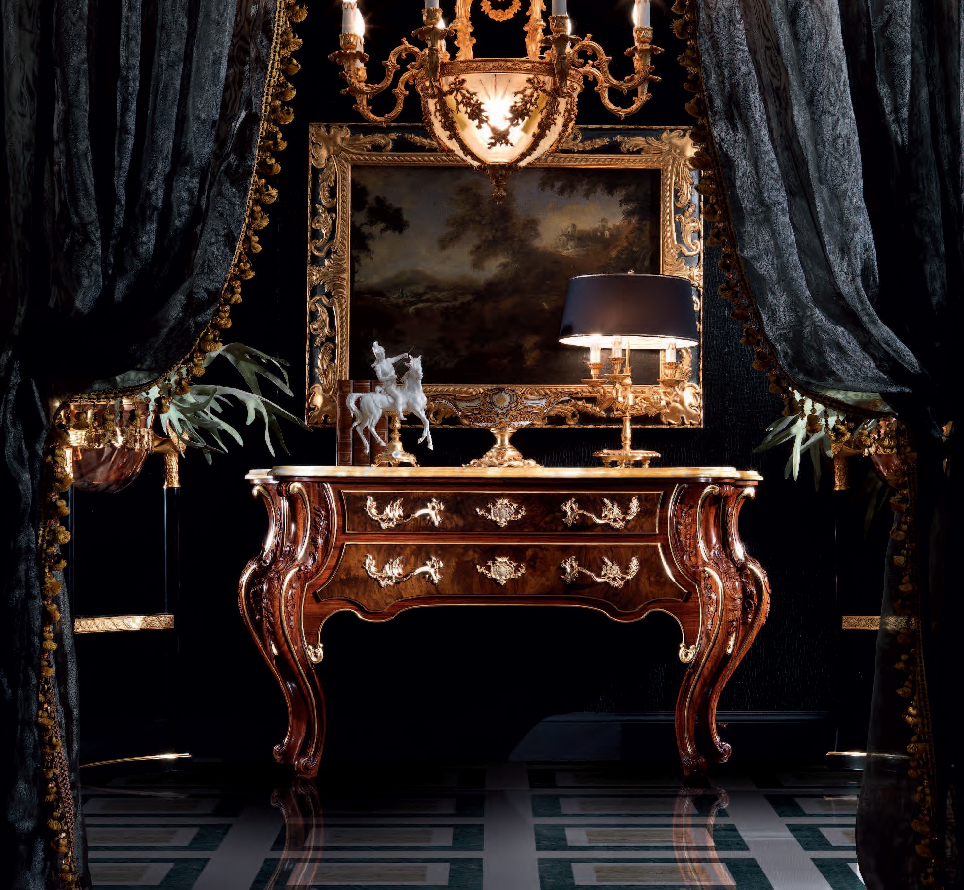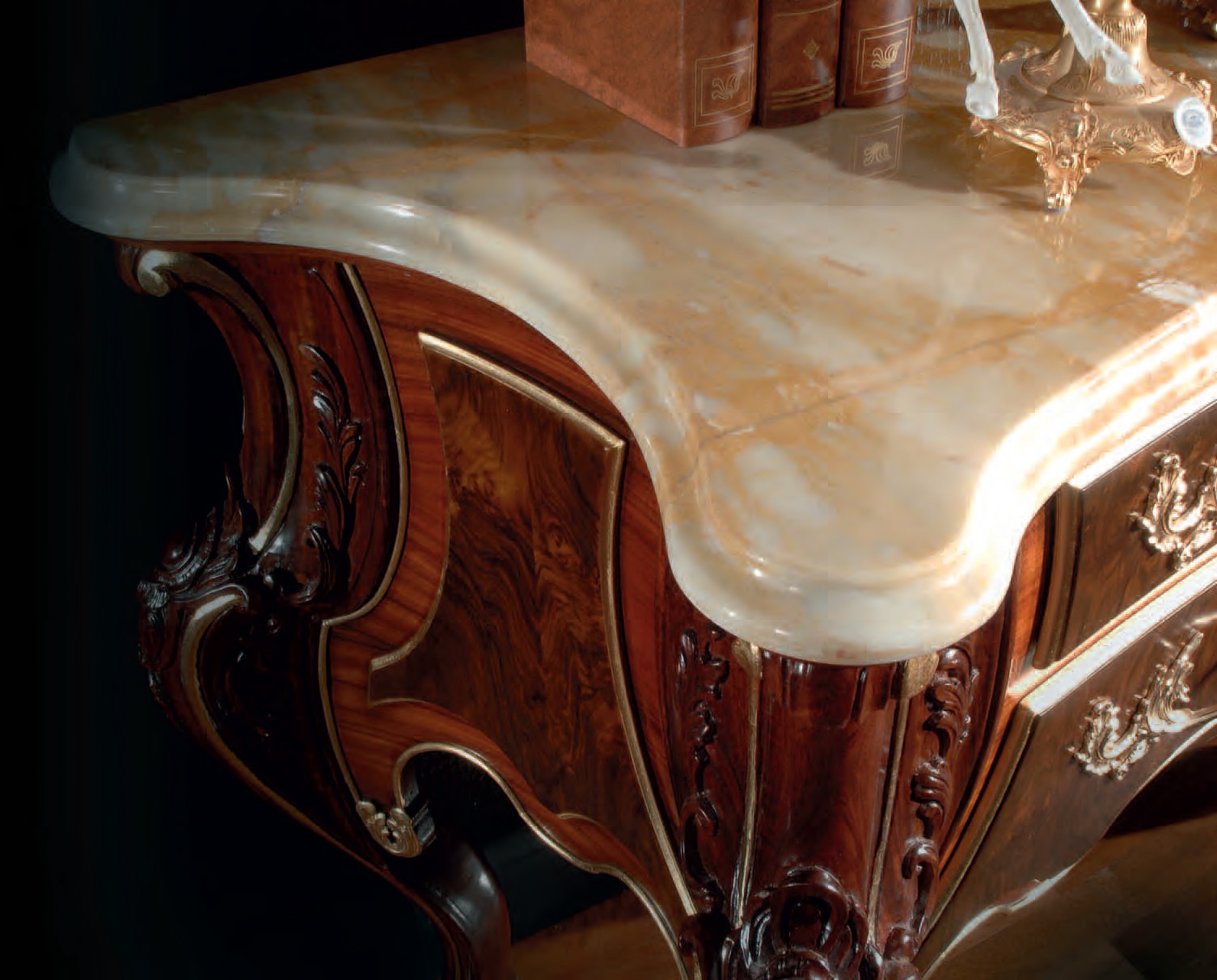 frame: solid wood countertop : marble carved elements: handmade carved elements: gilding |