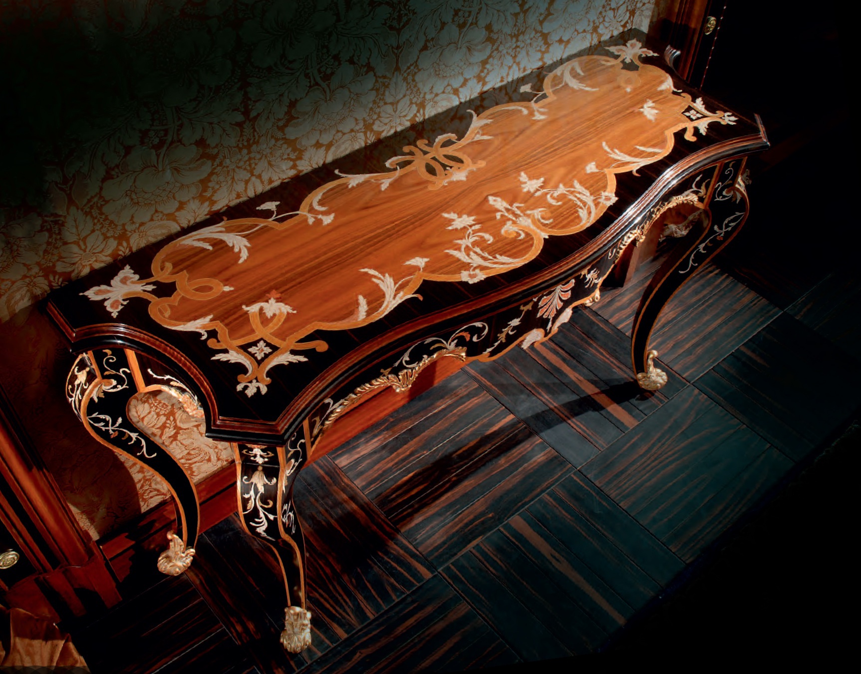 frame: solid wood carved elements: handmade decorative elements: gilding finish: inlay |