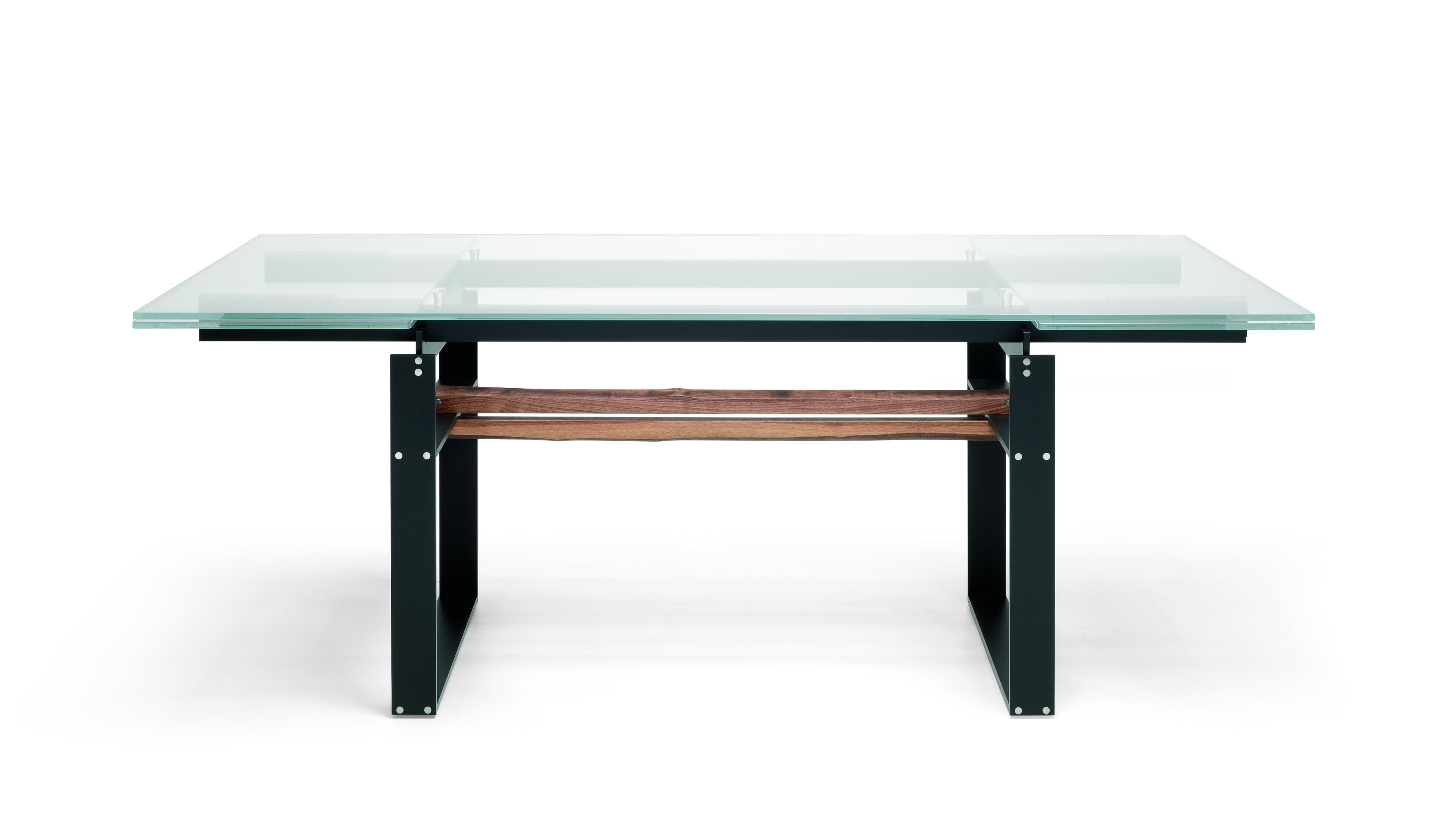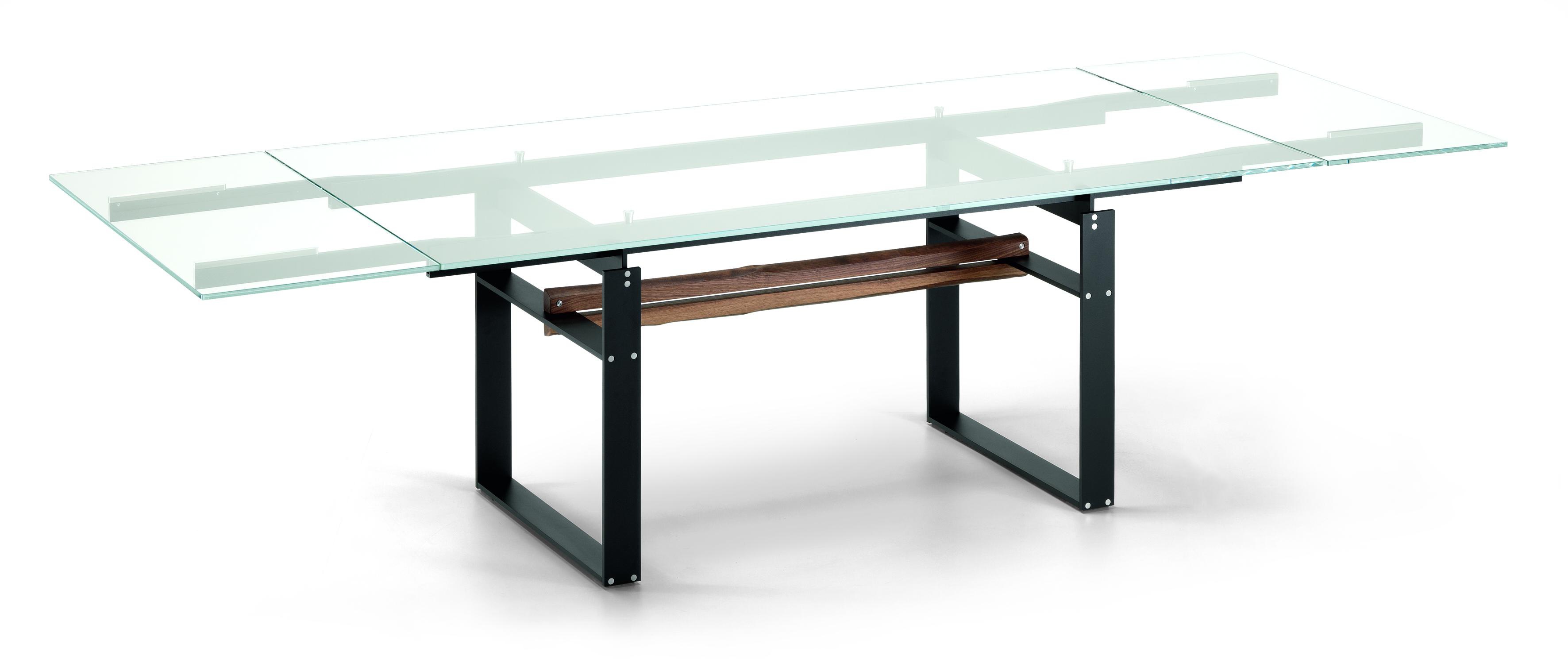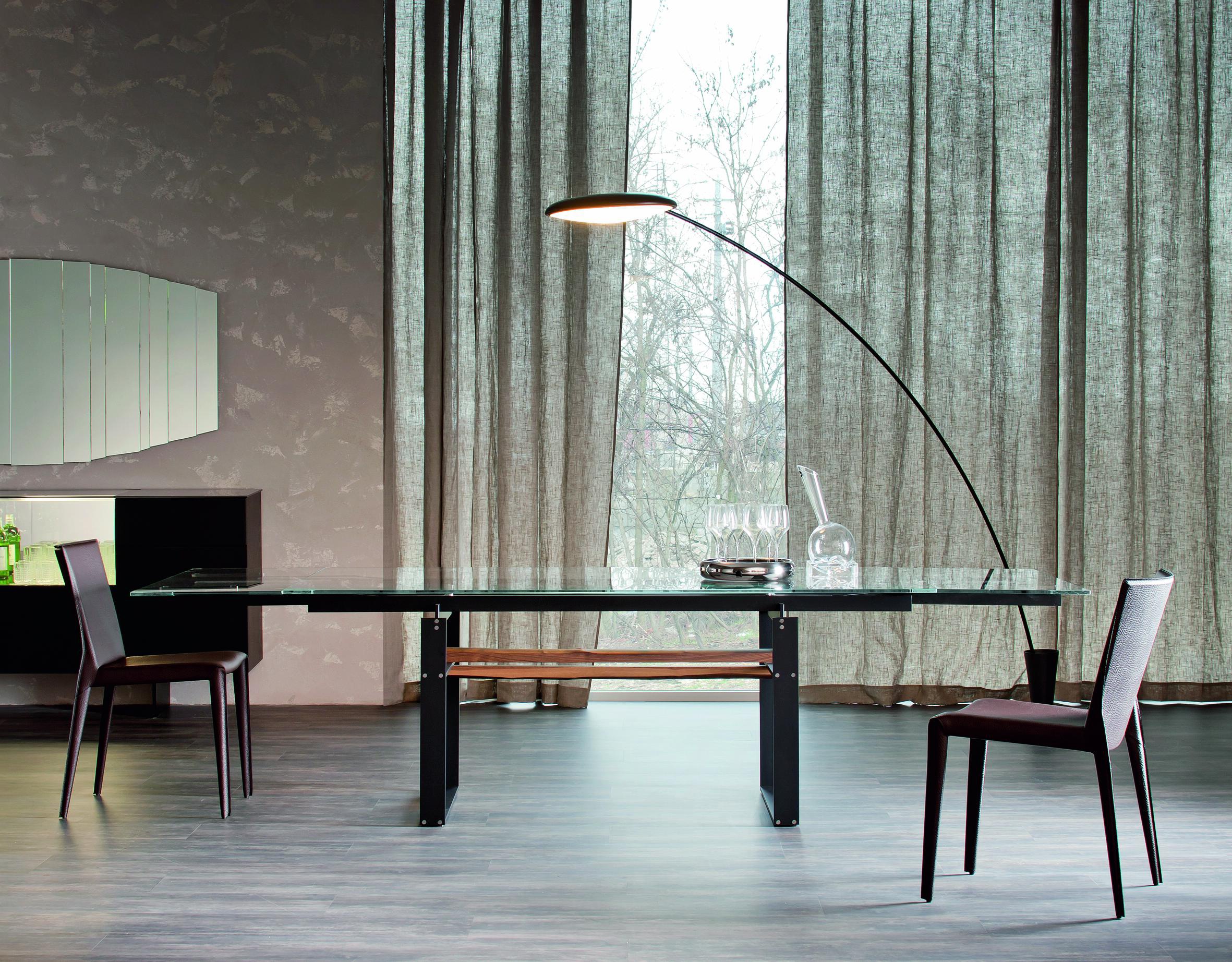 Dining extendable table Jerez Drive from the Italian manufacturer Cattelan Italia. The frame and legs are made of metal. The finish is matte with embossed white, graphite or black. The table top of transparent tempered glass. The model is made in modern style. Colours in stock.