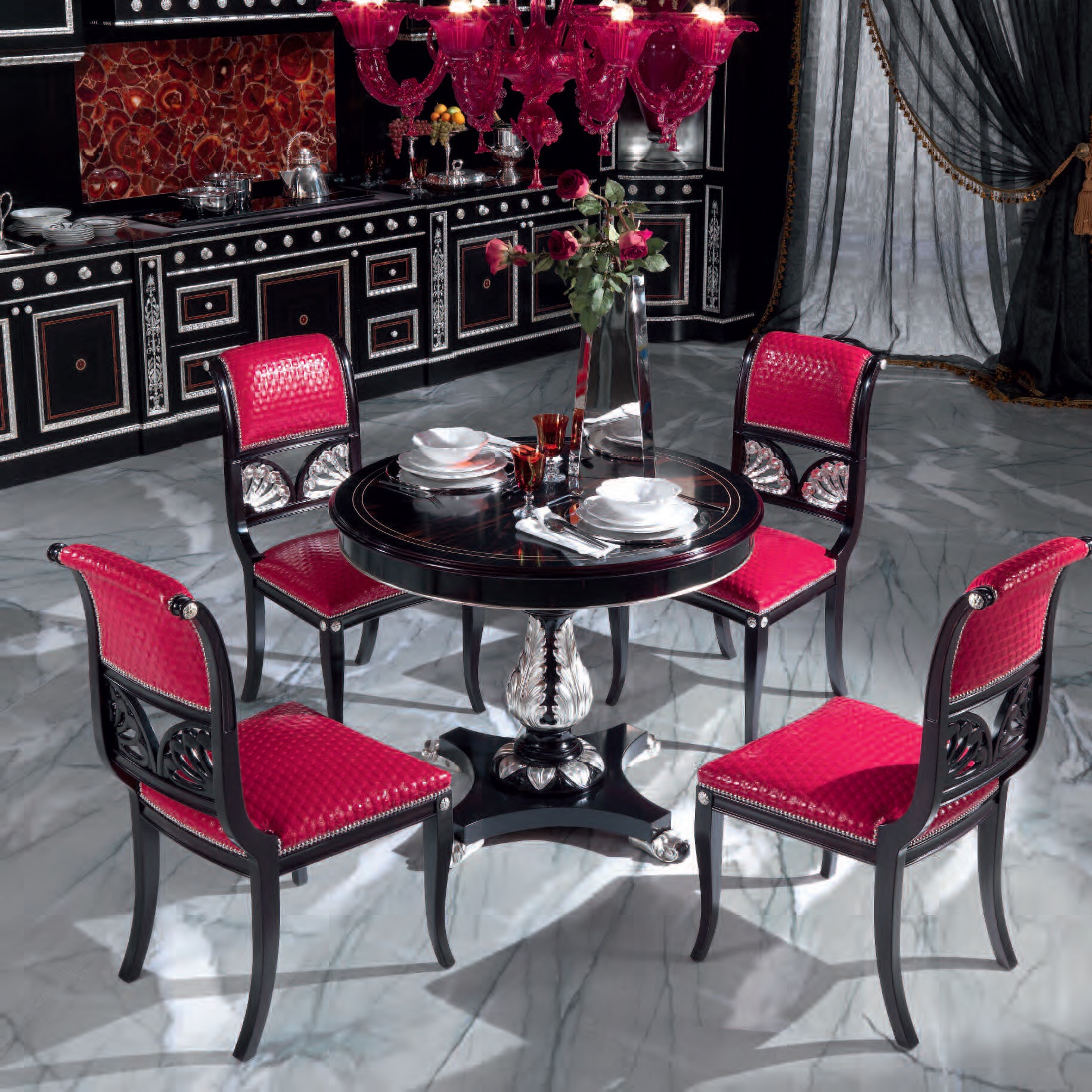 Coffee table from the Italian manufacturer Armando Rho. Model in classic style, made from solid dark wood, richly decorated with handmade carving. The base is silver-lacquered finish. Beautiful decorative pattern of several types of wood.