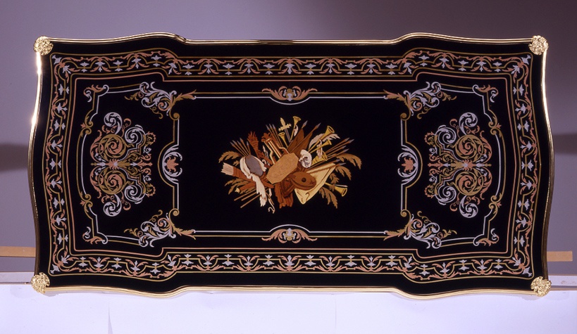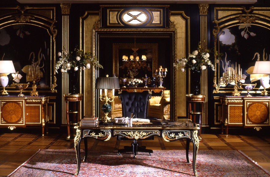 Desk from Italian producer Armando Rho. The model is made in classic style. Material - solid wood. The finish offers a glossy varnish. The top and legs inlaid.