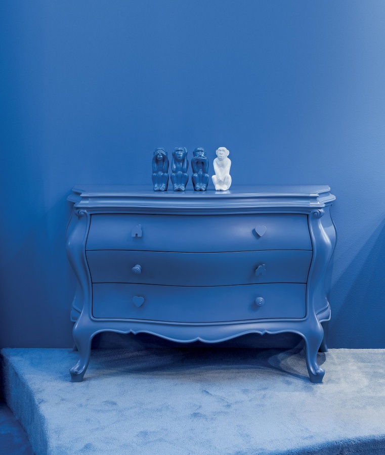 The Berto chest of drawers from Italian manufacturer Creazioni. The result of the style of the past combined with a fresh modern design, presenting them in a new light that raises the level of elegance, at the same time preserving its power. Unusual shapes, the contrasts of bright colors, and bold combinations of materials.