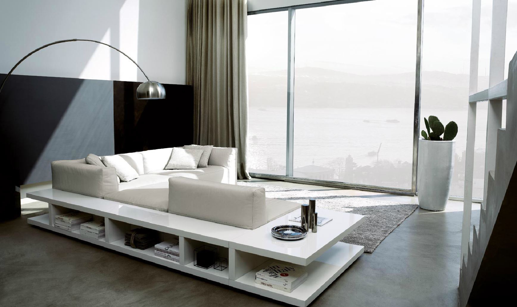 The corner modular sofa Sitin from Italian manufacturer MisuraEmme. The frame is wood. As upholstery - leather/textile. Filler - polyurethane foam. Color - white, but it is possible to choose from a catalog. With Central, lateral, corner modules and stools, you can create different configurations. The design is emphasized by decorative pillows. The model can be supplemented with side elements-tables for books.